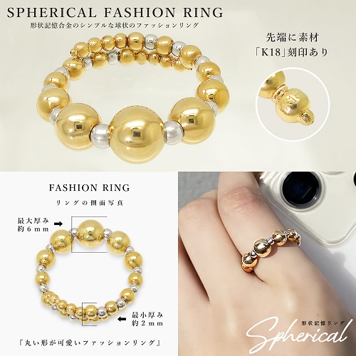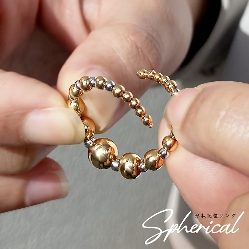 HOME > リング > K18ピンクゴールド & ホワイトゴールド 丸くてかわいい 形状記憶ワイヤー の フリーサイズ リング