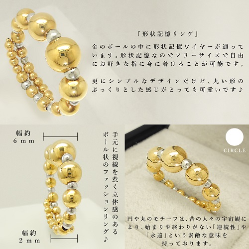 K18ピンクゴールド & ホワイトゴールド 丸くてかわいい 形状記憶ワイヤー の フリーサイズ リング